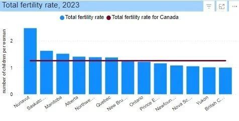 除了BC省以外,加拿大全境大部分省份也无法摆脱生育率低迷的困境。最新数据显示,在加拿大13个省和领地中,只有曼尼托巴省和纳努武特领地的生育率有所上升,其他地区均出现历史性的低出生率!