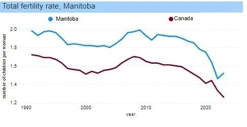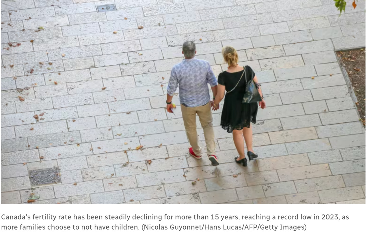 根据加拿大统计局(Statistics Canada)的最新统计数据,2023年,加拿大生育率连续第二年达到历史最低,每位女性平均生育1.26个孩子。如今,加拿大的生育率与韩国、日本、西班牙及意大利相近,跻身“全球最低生育率”国家之列。相比之下,美国在2023年的生育率为每名女士生育1.62个孩子,略高于加拿大的水平。