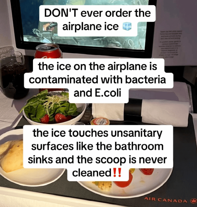 不久前,一名23岁的加拿大空乘Aislinn Swain也发布了一则视频,提醒大家注意飞机上的冰块极其肮脏。