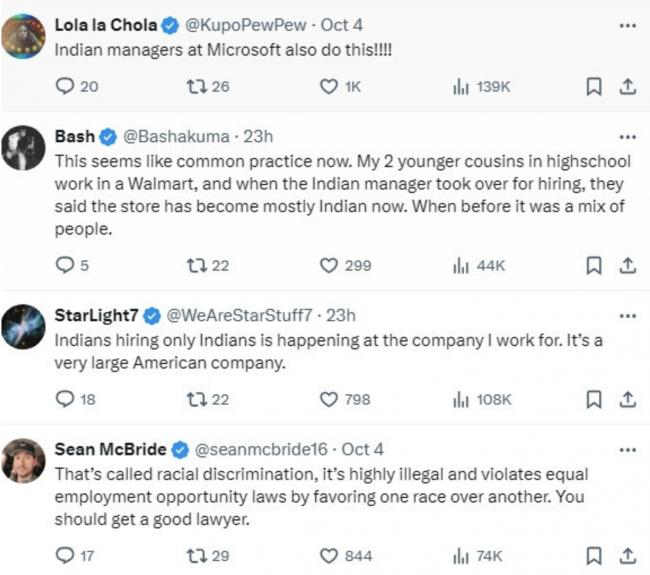 “我在一家大型美国公司工作,碰到过类似的情况,也是印度人只招印度人。”