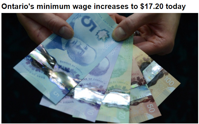 自今日起,安大略省的最低工资标准已实现提升,头一次与年度通货膨胀挂钩。自周二起,最低时薪将从16.55加元提升至17.20加元,增幅达到3.9%。