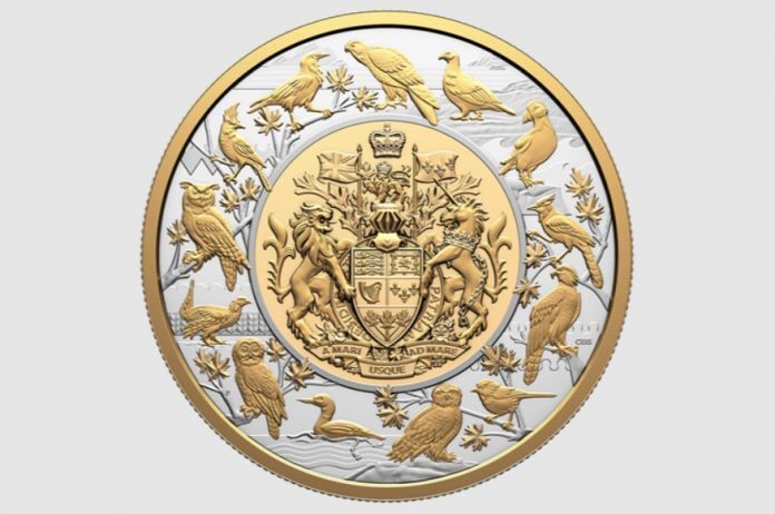 在尺寸上,无任何硬币能够与这枚名为加拿大鸟类硬币(Heraldic Landscape: Birds of Canada coin)相提并论。