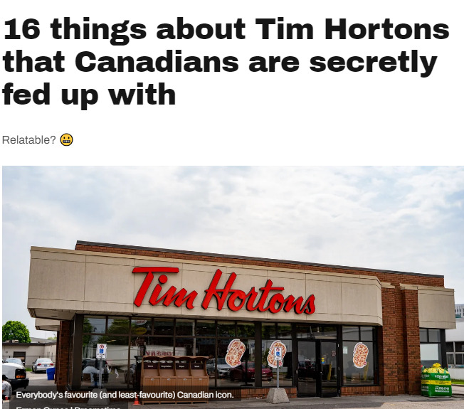 Tim Hortons 是加拿大的一项重要象征,但尽管我们都对它心存好感,现实中它并不是完美无瑕。大家都经历过那种“怎么会这样”的粉碎时刻,可能是错误点单,或者是饮品未能充分搅拌。