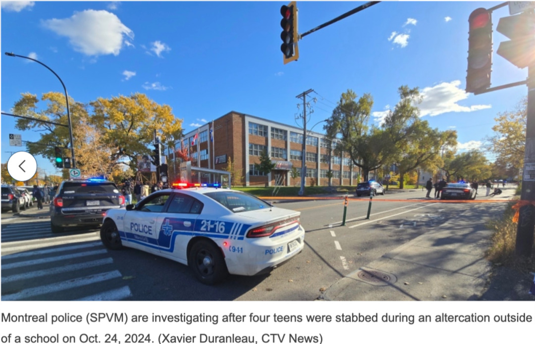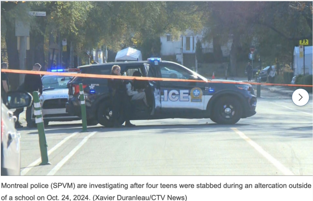根据蒙特利尔警方(SPVM)的报告,周四在Villeray-Saint-Michel-Parc-Extension区的约翰肯尼迪高中(John F. Kennedy High School)外发生了一起刺伤事件,涉及四名青少年。