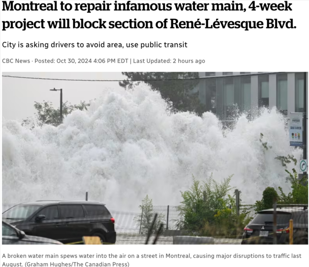 Sabourin指出:“我们意识到,这对驾驶者来说会是个挑战。” 他强调此次施工属于紧急维修,因为该市部分区域的供水依赖这条管道。他还提到,虽然饮用水仍在流向城市东部,但蒙特利尔希望能在冬季前完成修复,以降低整体成本。