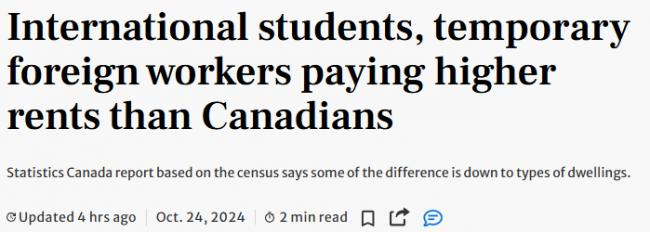 尽管留学生和临时外籍工人常被指责为加剧了加拿大住房负担危机的“替罪羊”,但他们似乎是受到租金成本影响最大的群体。