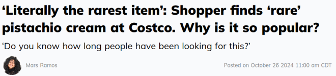 健身达人Optimalik(TikTok@optimalik)在他的一个视频中表示:“我在Costco发现了一款极为稀有的产品。大家知道,人们为找这个开心果奶油费了多大劲吗?”