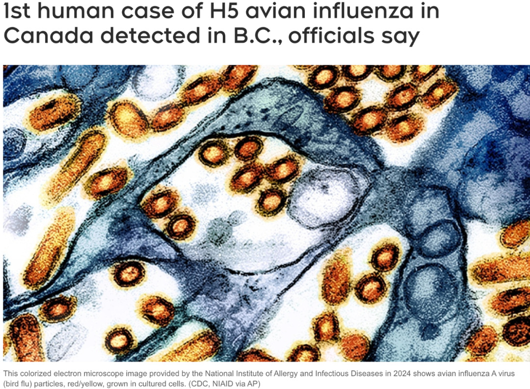 来自加拿大BC省的卫生官员透露,该省首次确认一例人类感染H5禽流感病毒的病例。