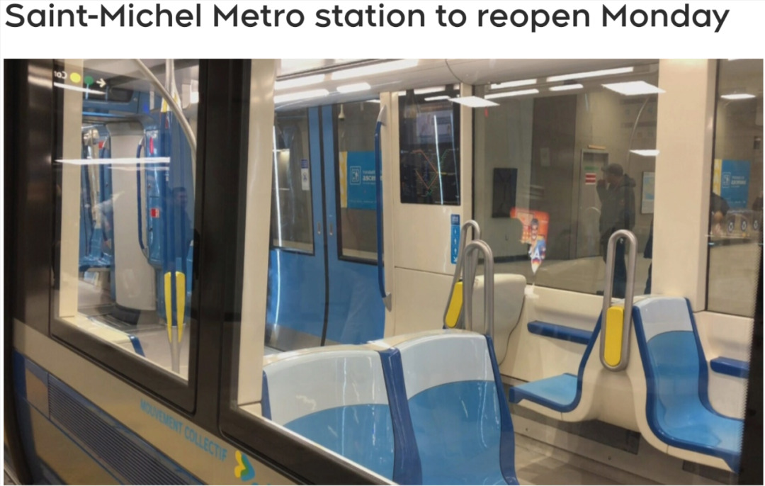 根据蒙特利尔交通公司(STM)的消息,地铁蓝线Saint-Michel站于周一上午10点重新开放。