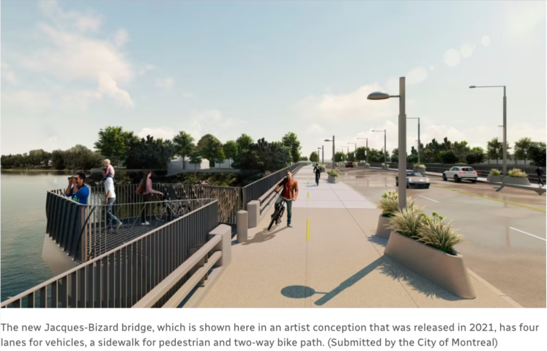 在2022年,蒙特利尔市政府向EBC Inc.公司授予了一份价值6780万加元的合同,负责建造这座新桥。相比于之前的三条车道,新桥设有四条车道,以提高通行能力。