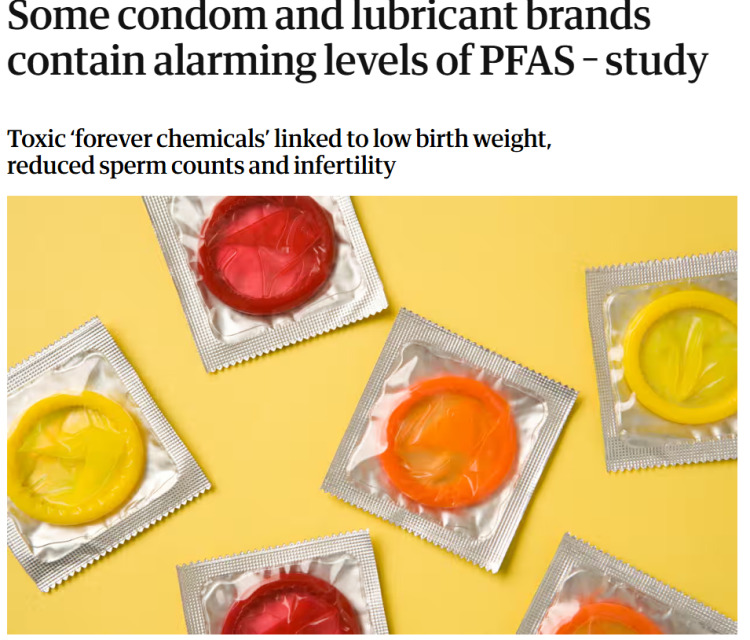 另外,男女生殖器的皮肤相对较薄,而该区域的血管却非常密集,使用这类“有毒避孕套”可能会提升PFAS的吸收风险。