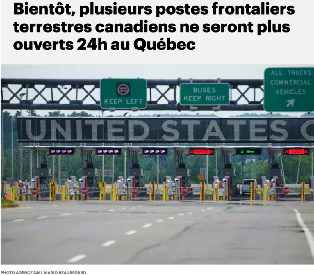 位于魁北克省的十个边境口岸将进行服务时间缩短的调整。在这些口岸中,目前24小时开放的八个口岸将在晚上停止接待旅客。