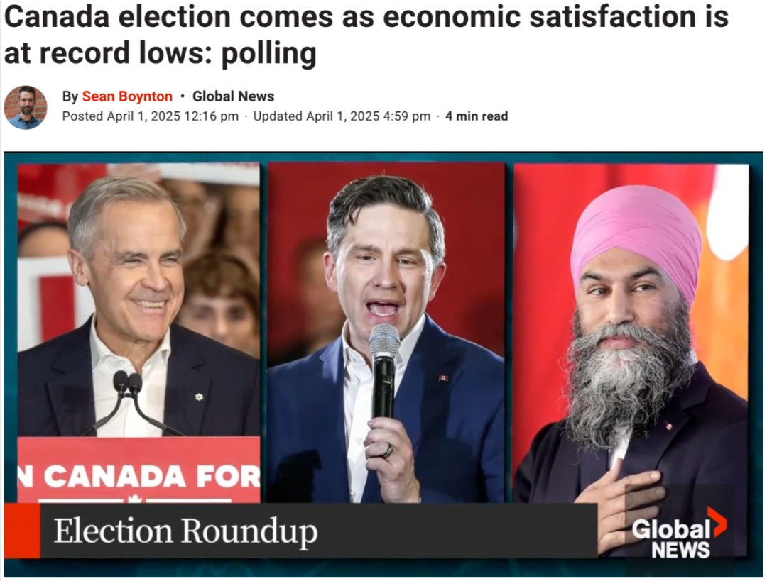 根据盖洛普(Gallup)最新的民意调查分析显示,加拿大民众对经济的乐观情绪以及对住房和医疗等公共服务的满意度均降至历史最低水平,这给即将到来的联邦大选及未来政府的组成带来了巨大挑战。
