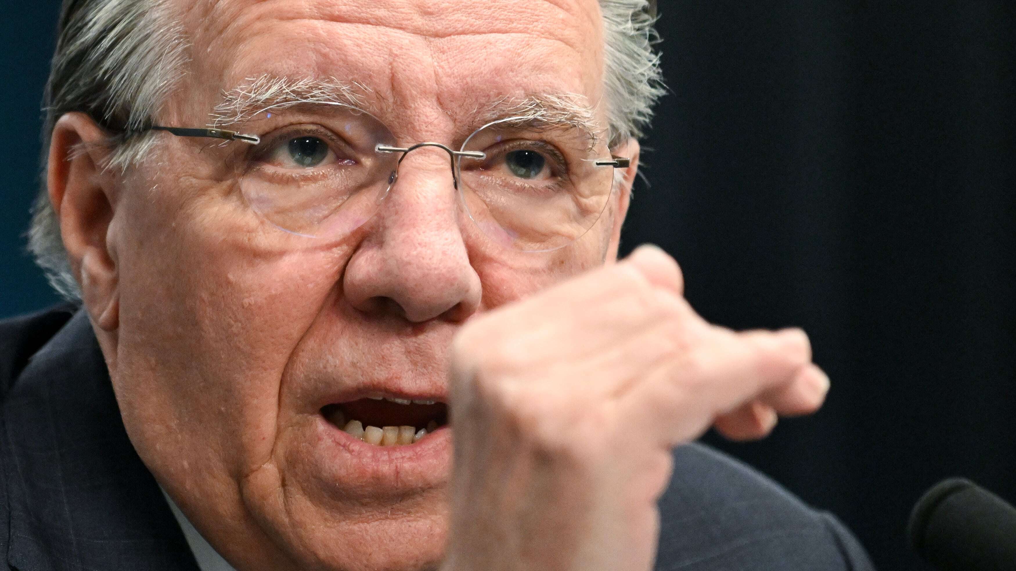 魁北克省省长弗朗索瓦·乐高于2025年4月3日在蒙特利尔的新闻发布会上发言。 (加拿大新闻社/Graham Hughes)