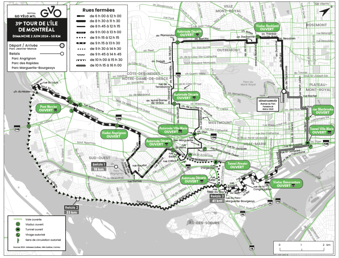 这两项活动的街道封闭地图和完整列表可以在Vélo Québec的网站上找到:https://www.velo.qc.ca/en/go-bike-mtl-festival/infocirculation/。