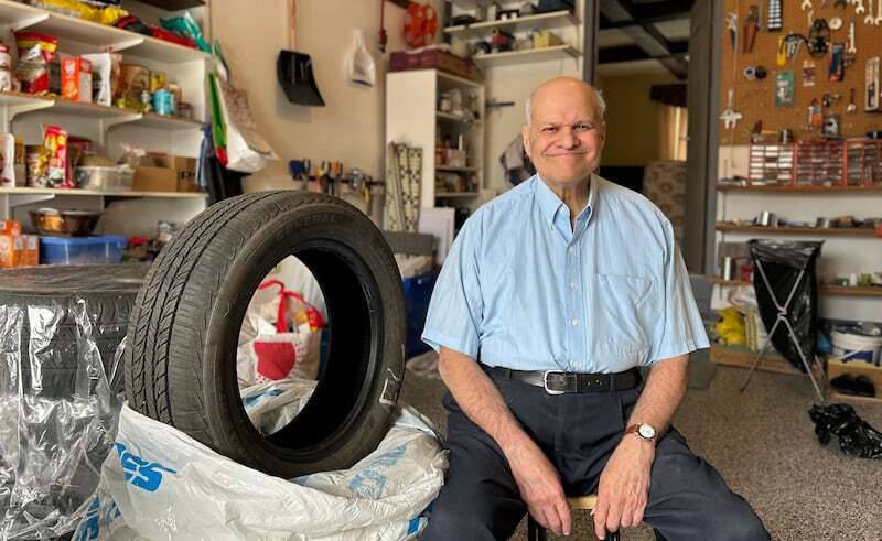 吉米·加哈迪 吉米·加哈迪站在他尝试在Facebook Marketplace上出售的轮胎前,但最终却被诈骗了。(Laurence Brisson Dubreuil/CTV News)