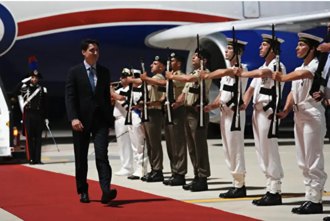 特鲁多乘坐加拿大皇家空军CC-150 Polaris飞机出行,随行人员人数在各个航段从37人到72人不等,其中一个值得注意的航段的餐饮费用高达85,000加元。