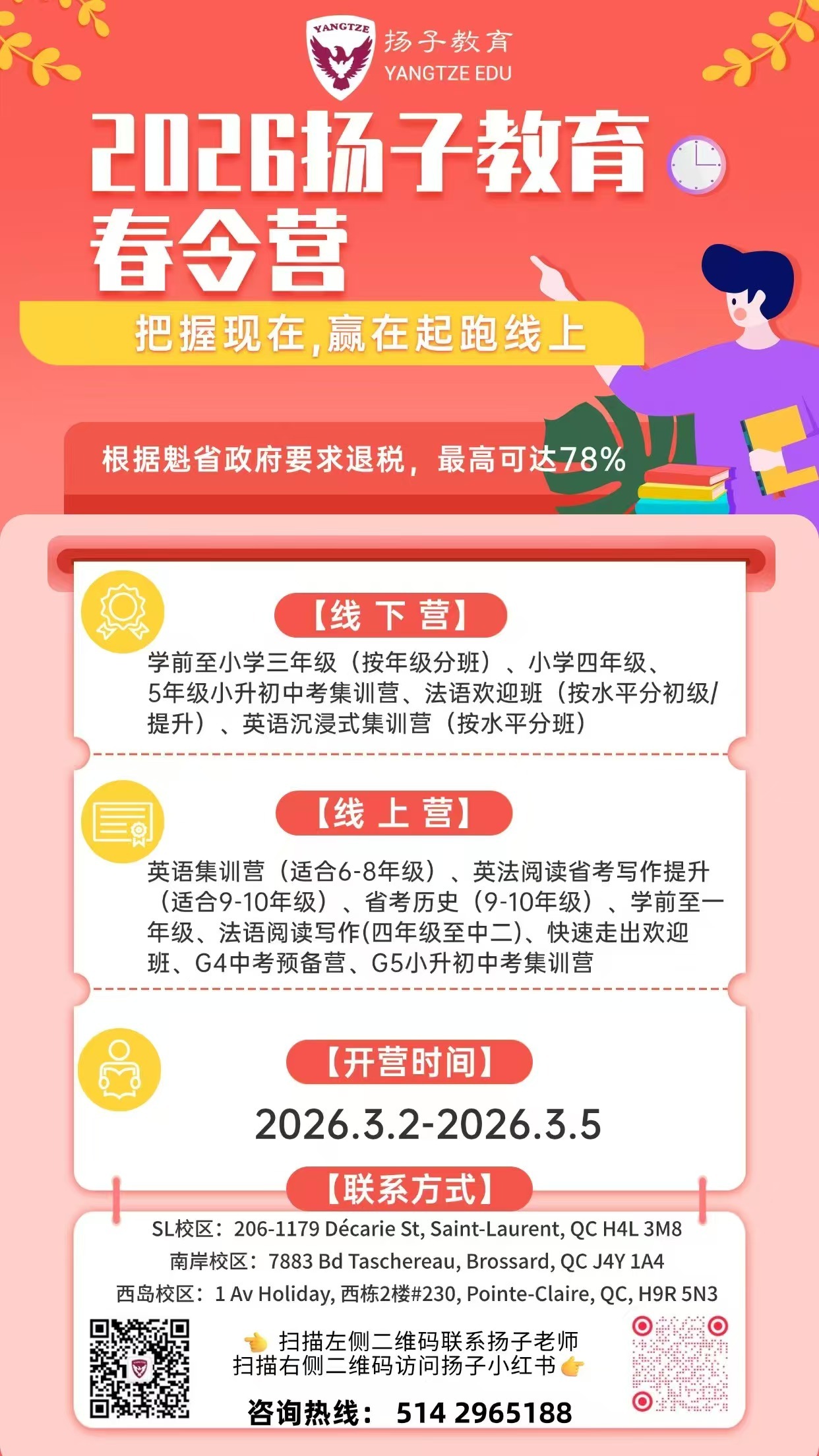 扬子教育 3.2–3.6 春令营准备就绪!欢迎尚未报名的同学加入扬子