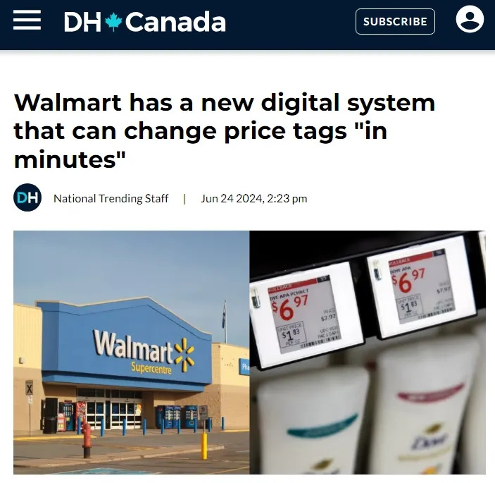 根据 Daily Hive报道,沃尔玛Walmart开始在店里启用一种高科技的电子标价,这种标签可以在短短几分钟内修改货品价格,从而使超市里每周特价的工作变得更容易。加拿大超市也可能因此迎来一波重要改革。