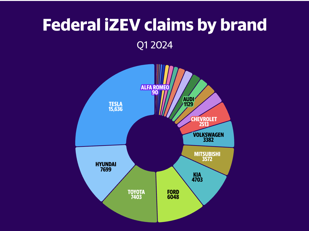 尽管销售增长放缓,零排放汽车占轻型汽车注册总量的比例在2024年第一季度仍占11.3%,略低于上一季度的峰值。
