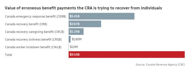 今年5月,CRA宣布,他们已经追回了约18亿元的错误新冠福利付款,截至去年底。今天周四,CRA表示,他们目前仍在努力追回另外95.3亿元的超额付款,涉及五种不同的新冠福利。