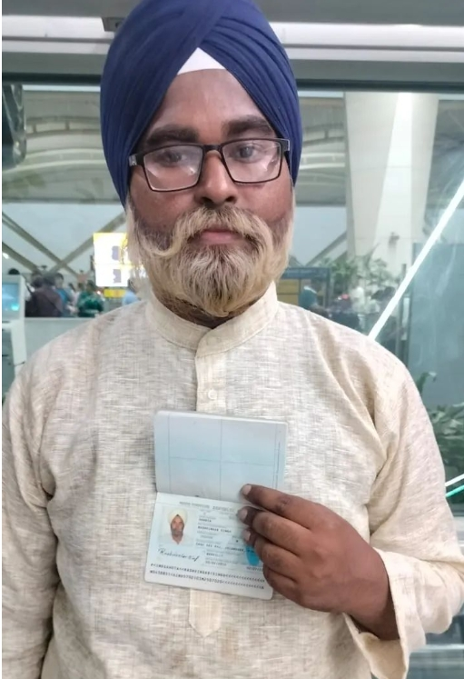 这个年轻人名叫古鲁塞瓦克辛格(Guru Sewak Singh),来自印度北部的勒克瑙。为了实现自己的“出国梦”,他真是下足了功夫。不仅把头发和胡子染成了白色,还戴上了老花镜,甚至坐上了轮椅,以一副年迈的模样试图通过安检。