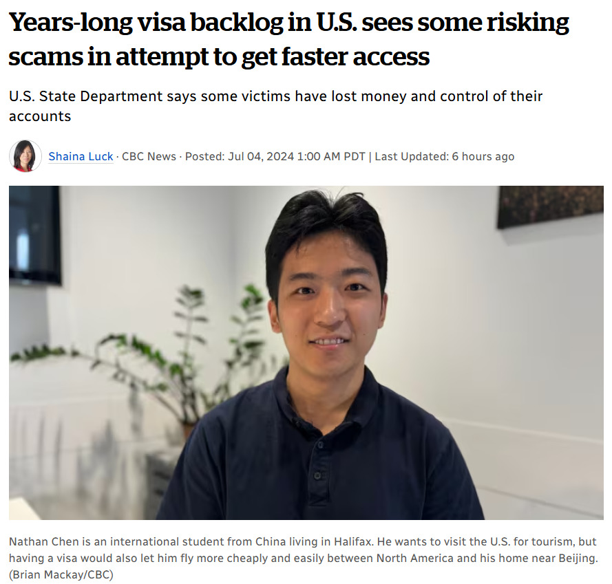 最终,陈同学的朋友在 7 月份发现美国驻加拿大领事馆有空位,并迅速帮助他重新预订。 为此,他必须跑一趟加拿大。