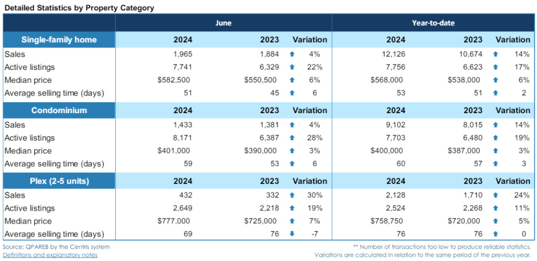 魁北克房地产经纪人专业协会(Quebec Professional Association of Real Estate Brokers,简称QPAREB)最近公布了2024年6月份的住宅房地产市场统计数据。