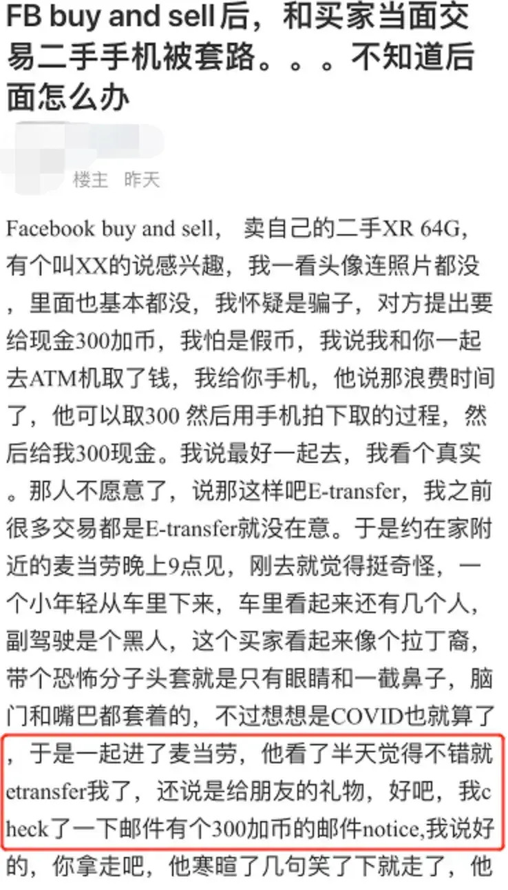 通过现金交易转为EMT(E-transfer),原以为安全的转账方式,最终却让小哥吃了大亏。当他发现自己被骗后,骗子早已消失无踪。