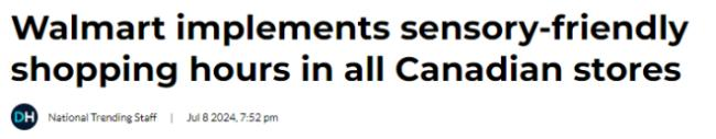据报道,沃尔玛宣布在加拿大的403家门店推出了"感官友好购物时段",为感官敏感者提供更舒适的购物环境。该公司表示,这些特别时段将安排在每周一、周二和周三的开门至上午10点。
