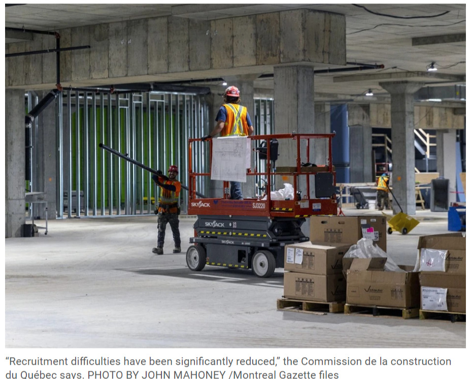 根据魁北克省建筑委员会(Commission de la construction du Québec,CCQ)的最新数据显示,随着就业市场的收紧,建筑行业中报告招聘困难的雇主数量显著减少。