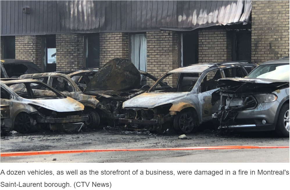 蒙特利尔警方表示,周一凌晨,Saint-Laurent区发生一起纵火案,导致十几辆汽车被烧毁,以及一家企业的店面遭到破坏。
