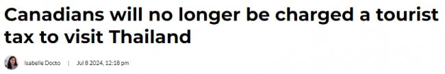 旅游税的实施一再推迟,对计划前往泰国旅游的加拿大人来说是个好消息,他们无需再担心支付额外的"旅游税"。