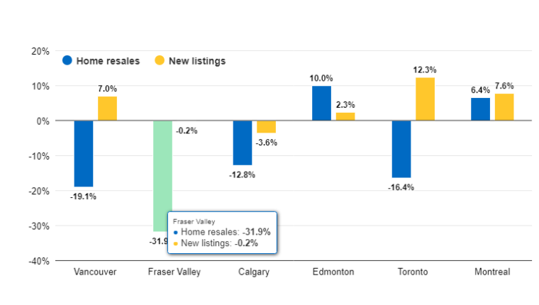 数据显示,菲沙河谷的房屋转售活动下降幅度最大,高达31.9%,其次是大温地区,下降幅度为19.1%。温哥华地区6月销售额的上升部分抵消了上个月交易量的下降。每月销售额上升5%(经季节性调整后)将使销售额保持在2024年高点附近,但仍不足以超过去年同期的水平。