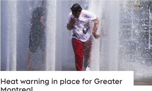 加拿大环境部发出高温预警,指出湿度指数将维持在35到40之间,高温天气将持续至周三。