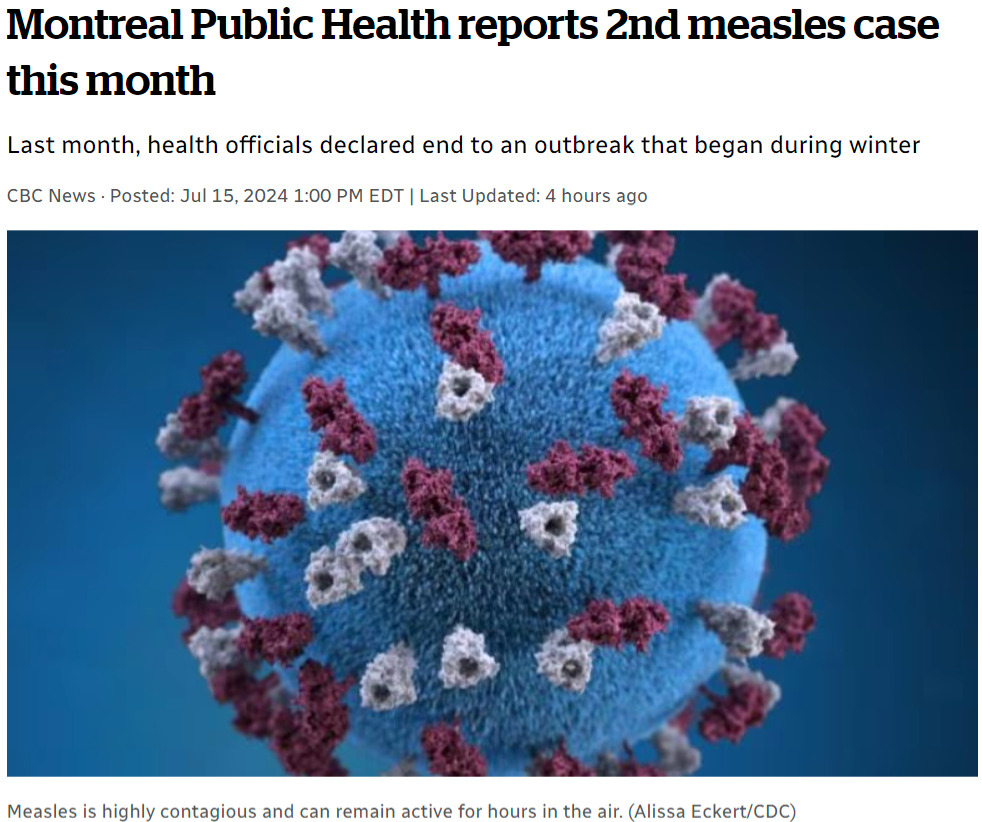 上周五,官员们称,7月3日从阿姆斯特丹飞往蒙特利尔的达美(Delta Airlines)航空公司 DL9288 航班上有一名旅客在非洲旅行期间感染了麻疹。麻疹是一种高度传染性的空气传播疾病,由于开展了免疫接种活动,其传播已变得越来越少。保护自己的最好方法就是接种疫苗。