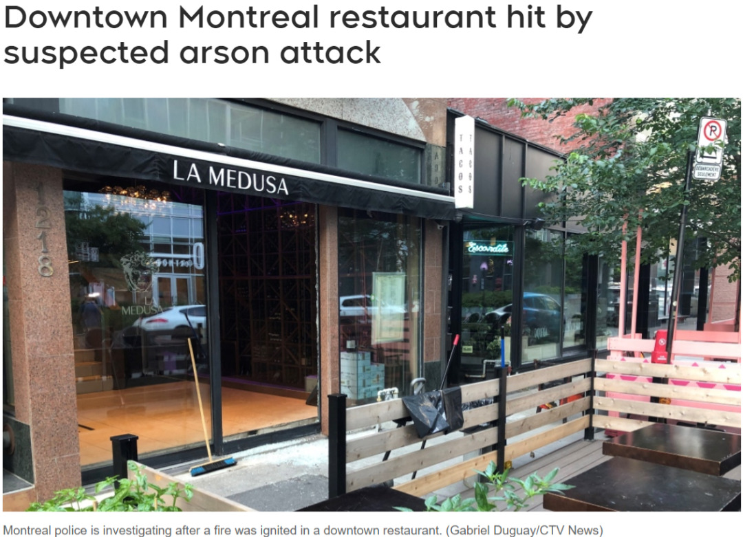 Dubuc表示:“根据初步调查结果,一名嫌犯砸碎了餐馆的橱窗,向内投掷了一个燃烧装置,然后逃离现场。”幸运的是,当时餐馆内没有人员,也没有人员伤亡的报告。