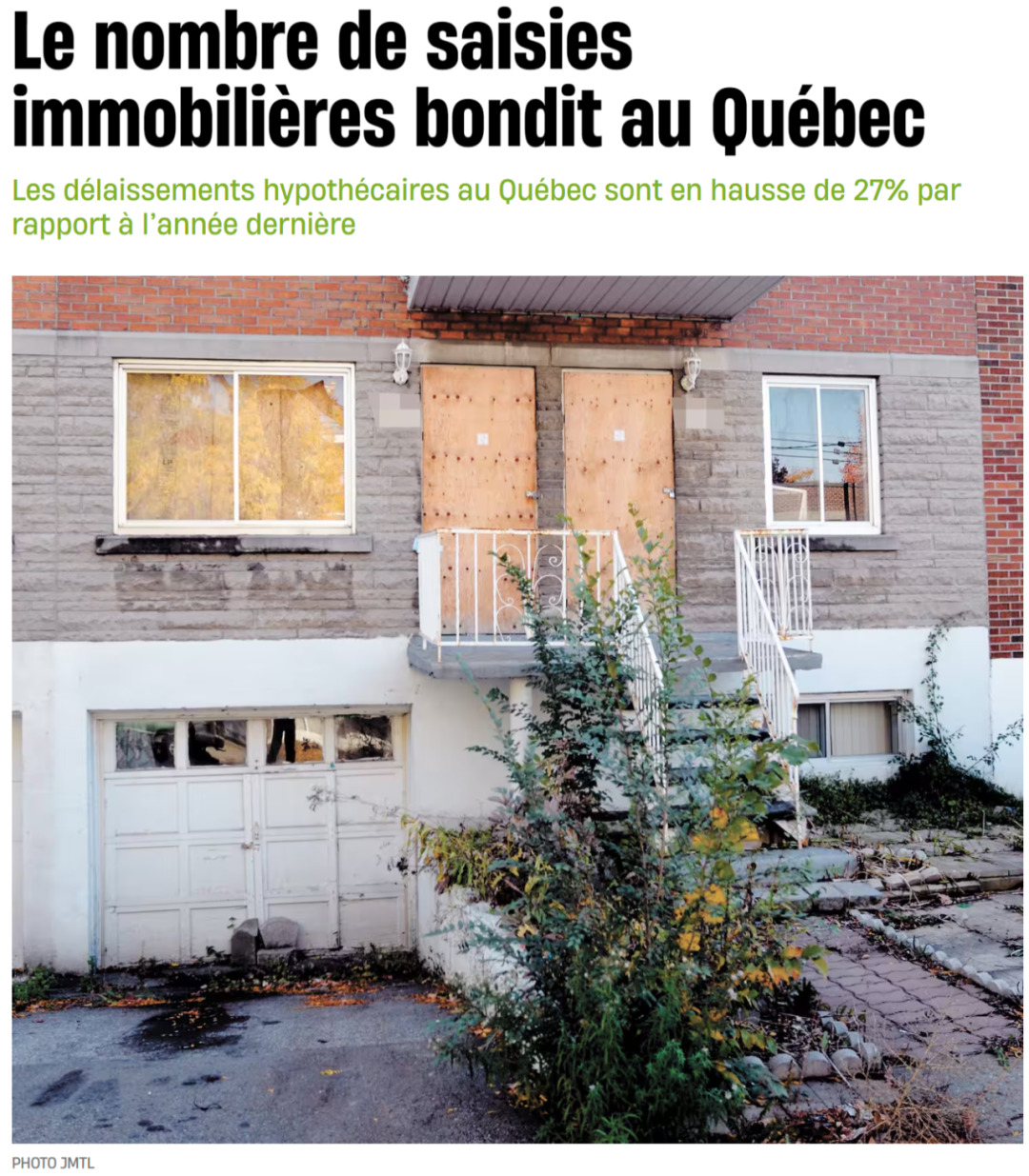 Le Devoir报道,根据魁北克土地登记处的数据,去年陷入财务困难的数量比2022年增加了39%。财务困难包括未支付抵押贷款或房产税、破产或扣押。媒体指出,去年有近18%的房产被扣押,达到345起,这一数字高于2019年疫情爆发前的水平。