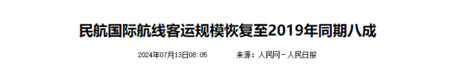 2024年暑期民航运输已正式启动,在此期间,国际旅游和留学出行将成为市场热点。