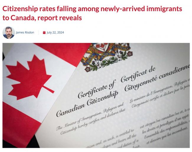 报告指出:“尽管移民的数量显著增加,但安大略省、不列颠哥伦比亚省和阿尔伯塔省的入籍人数却出现了最大的下降。”该分析是基于加拿大统计局之前进行的调查结果,该调查显示,从1996年的75.4%下降至2021年的45.7%,移民在抵达后的五至九年内的入籍率大幅降低。“不同类型的移民在入籍率上存在明显差异。”
