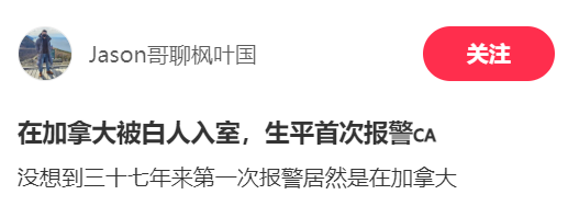 据华人网友Jason在社交平台上分享:“在加拿大遇到白人入室,没想到自己37年来第一次报警竟是在这里...”