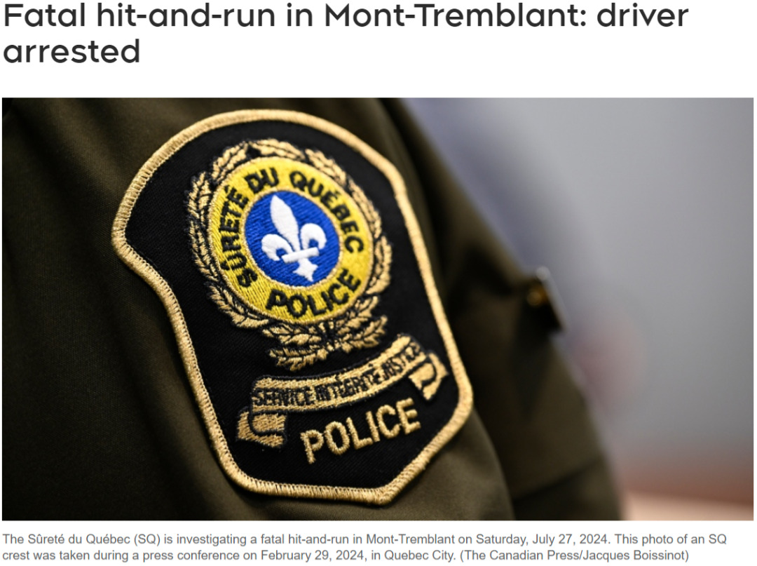 在周六凌晨,魁北克省的Laurentians地区Mont-Tremblant发生了一起致命的肇事逃逸事件,魁北克省警方(Sûreté du Québec,SQ)目前对此事展开了调查。