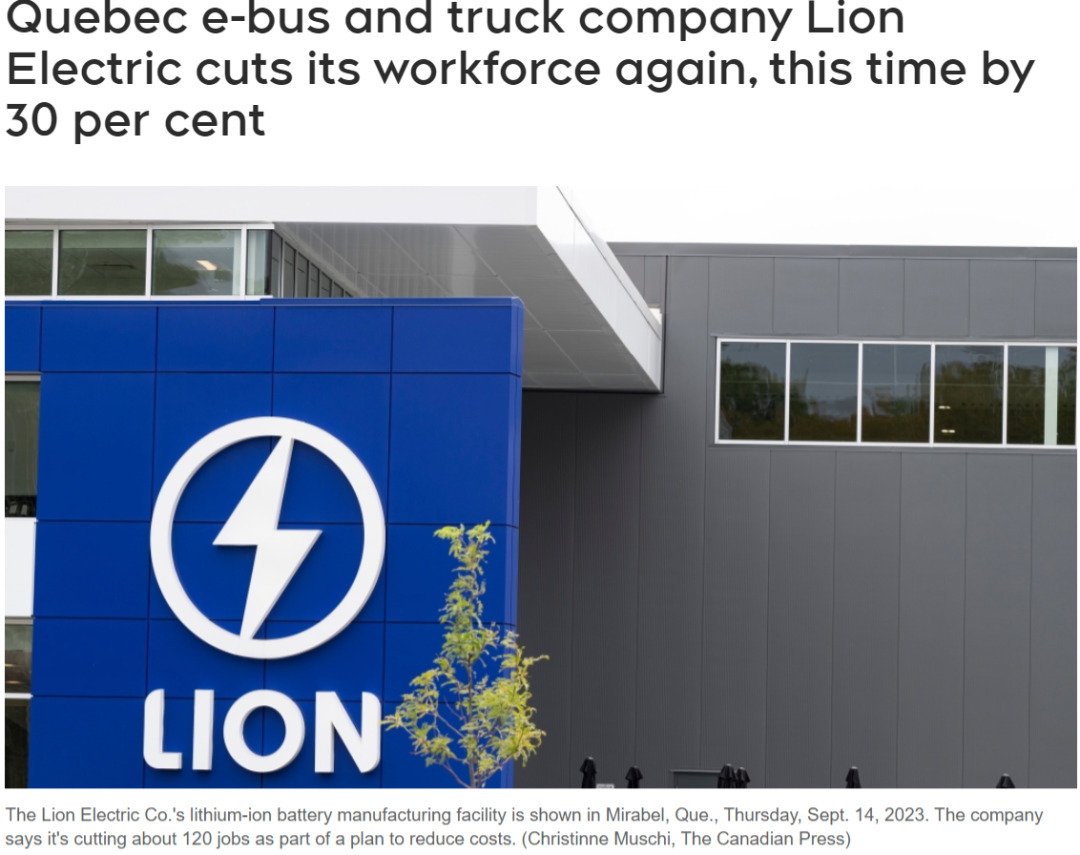 在周三,来自魁北克的雄狮电动汽车公司(Lion Electric)再次宣布进行大规模裁员。此次裁员使得这家专注于中型和重型城市电动汽车制造的企业在今年内第三次调整人力,员工整体规模减少了30%。
