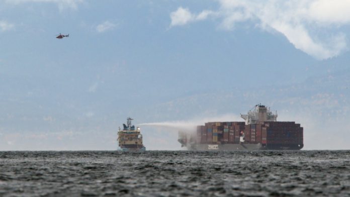 在货柜掉落不到两天的时间里,当船只停靠在维多利亚附近时,装有危险化学品戊基黄原酸钾的一个货柜突发火灾,并迅速蔓延至其他货物。