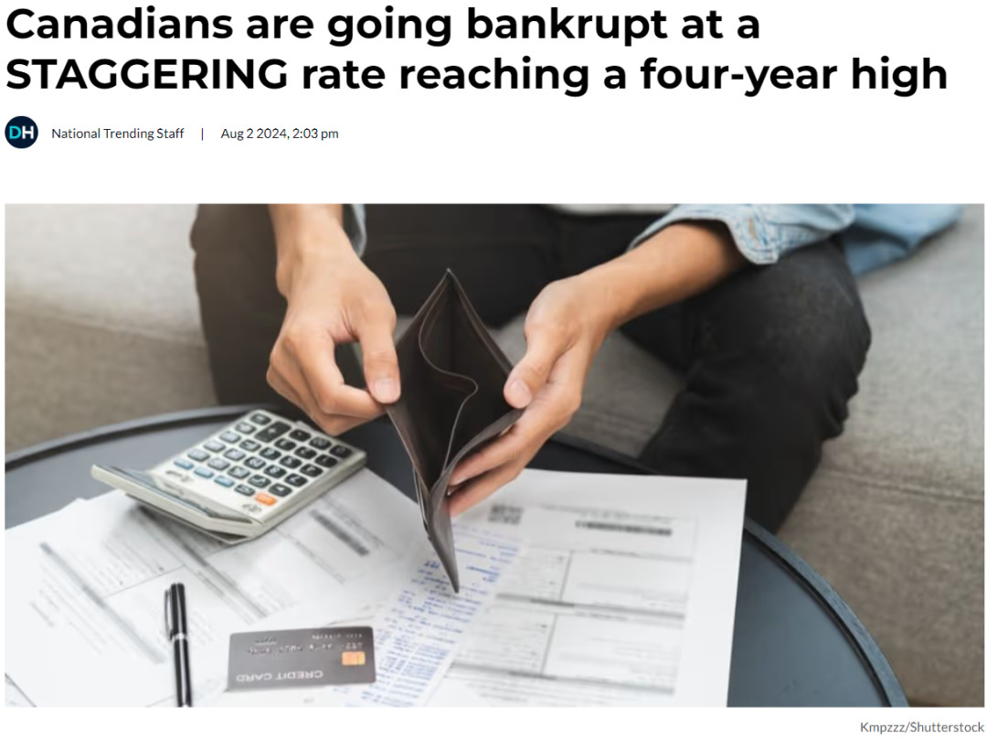 随着债务压力的加剧,加拿大的破产率攀升,达到历史最高水平。
