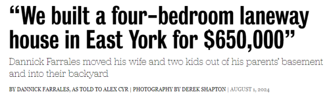 受到启发后,Alex开始着手进行研究。这对夫妇开始思考,是否在父母的后院建立一个独立住宅是他们在加拿大拥有自己住房的唯一方案。