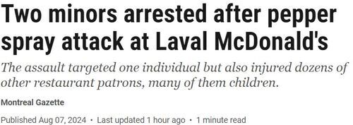 周三,魁省Laval警方公布,他们已拘留了两名未成年人,涉嫌参与今年1月在当地一家麦当劳餐厅的胡椒喷雾攻击事件。