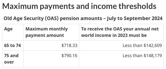 截至7月29日,符合条件的65岁至74岁老年人每月最大奖励为718.33加元。