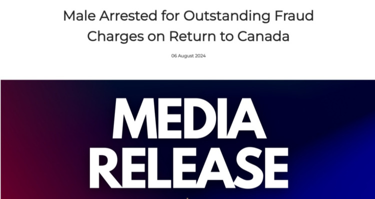 随后,调查发现这张支票是伪造的,执法人员在寻找他时发现他已经逃离加拿大境内。