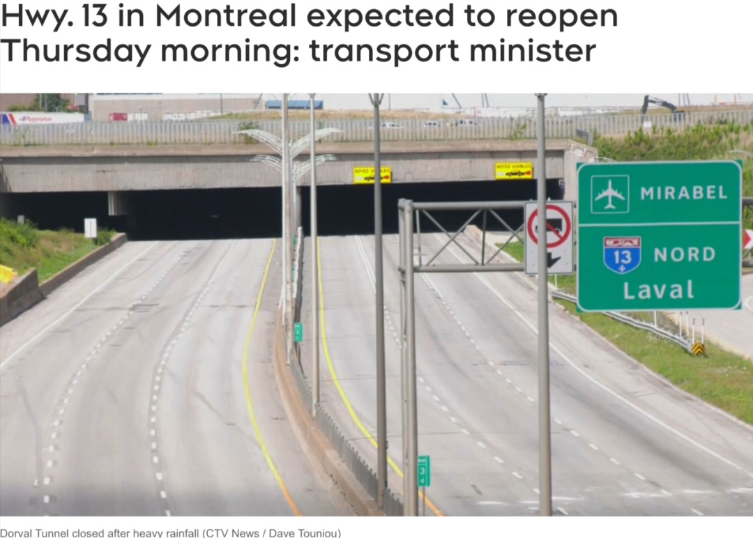 交通部门已经建立了一个临时排水系统,以应对潜在的额外积水。魁北克省交通部也呼吁道路使用者在工作人员完成维修之前,尽量避开该区域,选择在家工作或使用公共交通工具。